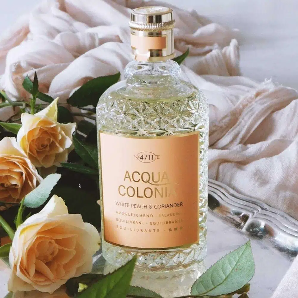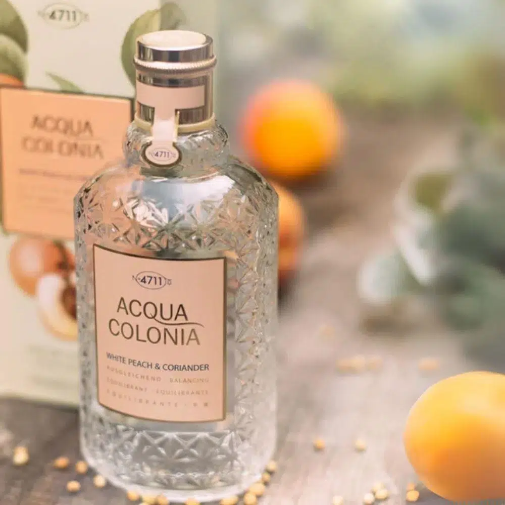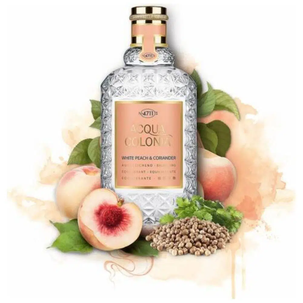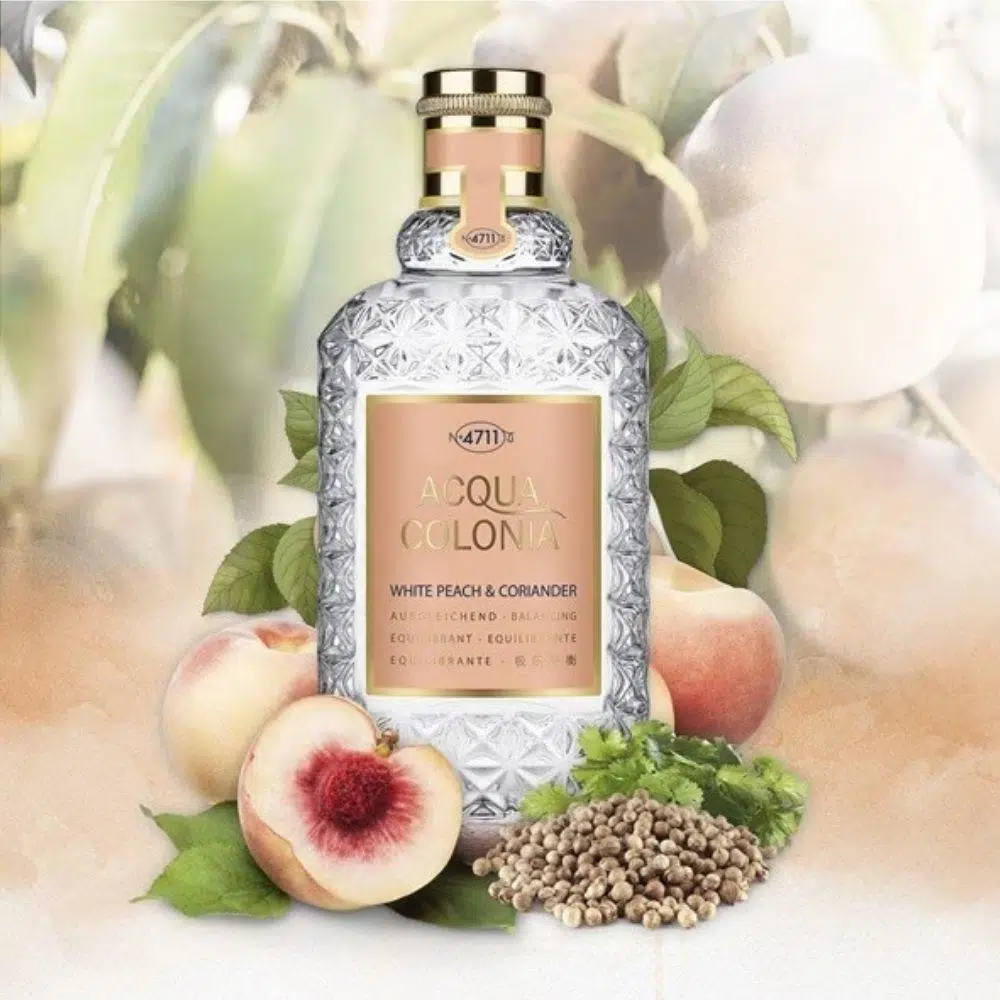 Eau de Cologne 4711 Acqua Colonia Beyaz Şeftali ve Kişniş ile kaygısız ve rahat hissedin. Bu dengeli koku, stresli ruhlar için saf bir balsamdır. Beyaz şeftalinin meyveli, taze aroması duyuları cezbeder ve saf bir mutluluk hissi yaratır. Canlı, limonlu kişnişin yorgun zihinleri canlandıran etkisiyle bir kontrast yaratılır.
