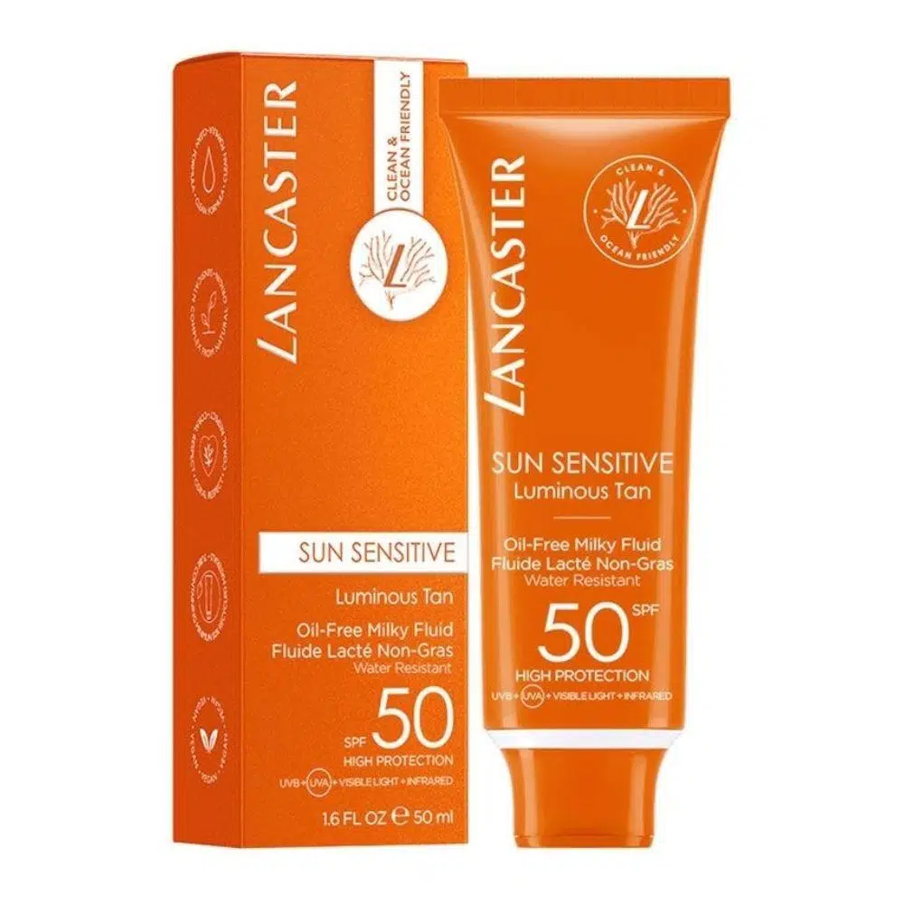 Sun Sensitive serisi, Lancaster'ın güneşe duyarlı ve hassas ciltler için yüksek toleranslı formüllere sahip en iyi performanslı güneş korumasıdır. Patentli Full Light Teknolojisi cildi UVA, UVB, Görünür Işık ve Kızılötesi Işınlar’dan korurken, doğal kökenli Sunsicalm Kompleks ise hassas cildi güneşten kaynaklanan hasarlardan korur ve yatıştırır. Temiz İçerikli ve Okyanus Dostu formüllere sahip hafif ve yağsız-sütlü doku, uygulandığında cilt üzerinde görünmez ve cildi güzelleştirir. Suya dayanıklıdır, yapışkan his bırakmaz. Hem cildinize hem doğaya saygılıdır. Vegan formüllüdür: Direkt ya da dolaylı yoldan, hayvanlardan elde edilen hiçbir bileşen barındırmaz. Mercan Refisi Dostudur: Okyanusa ve mercan resiflerine zarar veren zararlı güneş koruyucu içerikler bulunmaz. Geri Dönüştürülmüş Ambalaj: En az P tüketim sonrası geri dönüştürülmüş plastik içeren ambalaj kullanılmıştır. Cildinizde rahat bir his için yüksek toleranslı formüle sahip Lancaster Sun Sensitive Oil-Free Milky Fluid SPF50 yüz güneş korumasını kullanın.