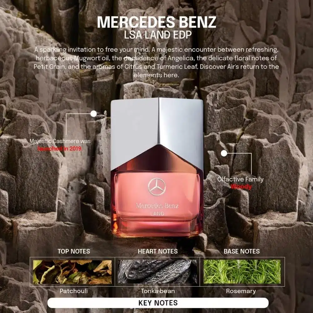 Mercedes-Benz Land, erkekler için üretilen Odunsu Baharatlı bir koku.